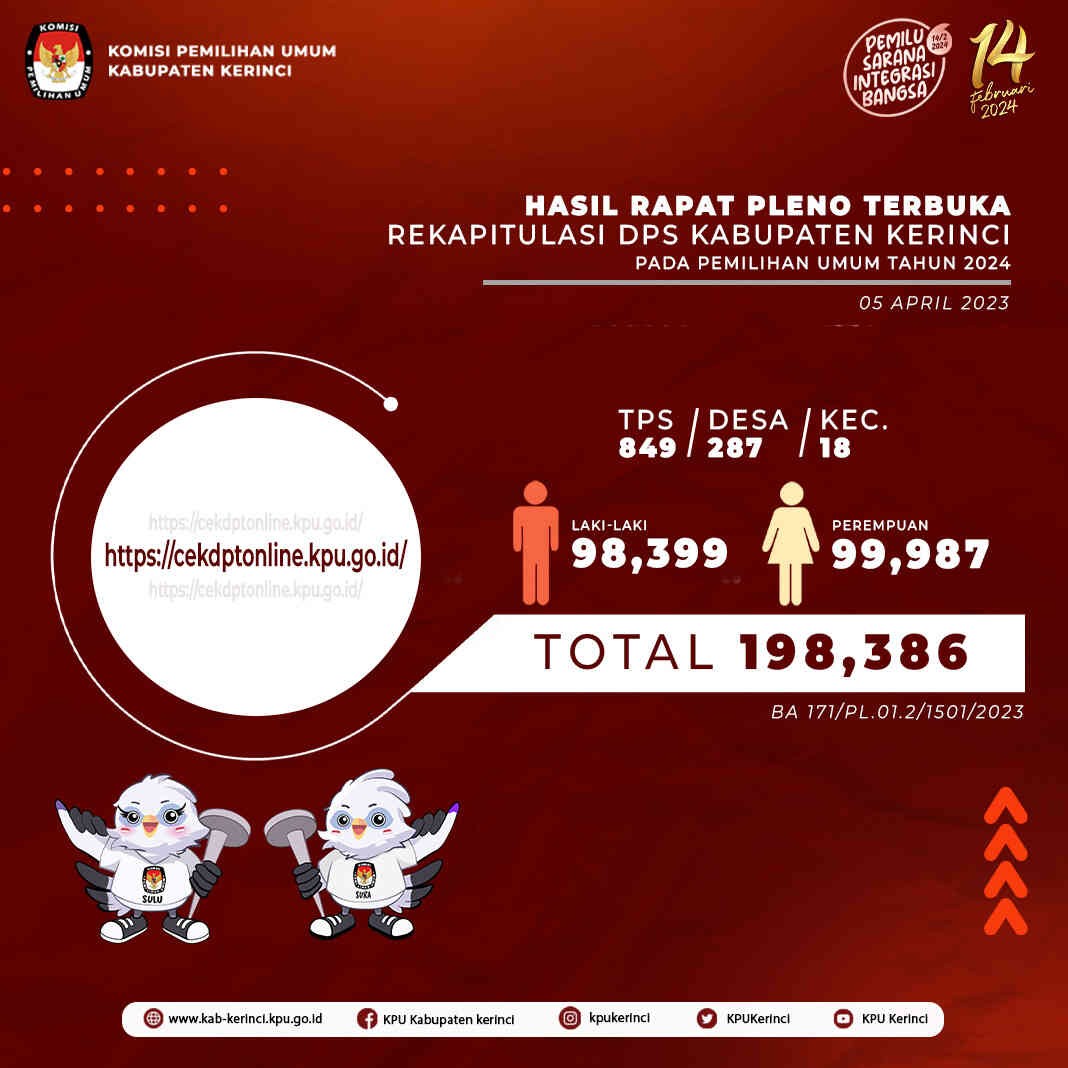 Berikut infografis Daftar Pemilih Sementara (DPS) Kabupaten Kerinci pada Pemilihan Umum Tahun 2024.