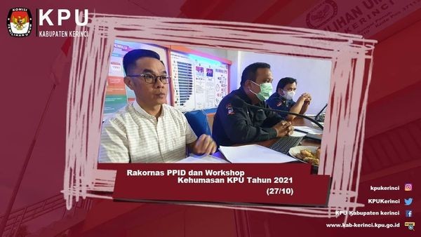 Terakhir, KPU Kabupaten Kerinci mengikuti secara seksama Rakornas Pengelolaan Informasi dan Dokumentasi serta Workshop Kehumasan KPU Tahun 2021 yang diadakan oleh KPU RI. Melalui kegiatan ini, KPU RI berharap seluruh jajaran KPU di setiap tingkatan mampu melakukan pengelolaan informasi publik secara terbuka, inovatif dan edukatif. Kegiatan Rakornas dan Workshop dijadwalkan berlangsung 3 hari, terhitung sejak 27 hingga 29 Oktober 2021.