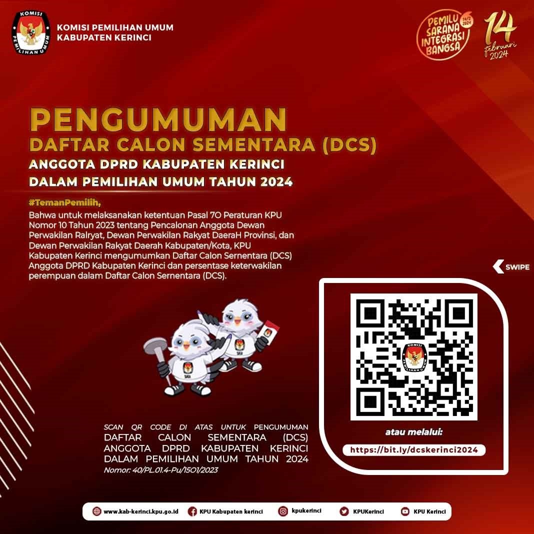 Untuk info lebih lengkap, #TemanPemilih bias memindai Bercode/QR Code, atau melalui tautan bit.ly/dcskerinci2024. yang tertera di e-flyer.